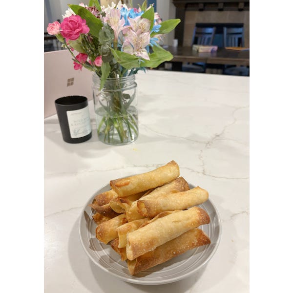 One of my favorite childhood memories is standing next to my mom when she was making dinner. I particularly liked the nights when flautas were on the menu. I’d sit there, begging for her to give me some of the chicken she fried up before it was even in the tortilla. Perfectly seasoned, it was one of my favorite meals she made. I can still taste it. Now, as an adult, I lament the fact that I cannot perfectly recreate her meals. She has a real gift with slowly, lovingly cooking…and me? I’m just in a rush to get dinner on the table. (See those slightly burnt ends? Rushing.)